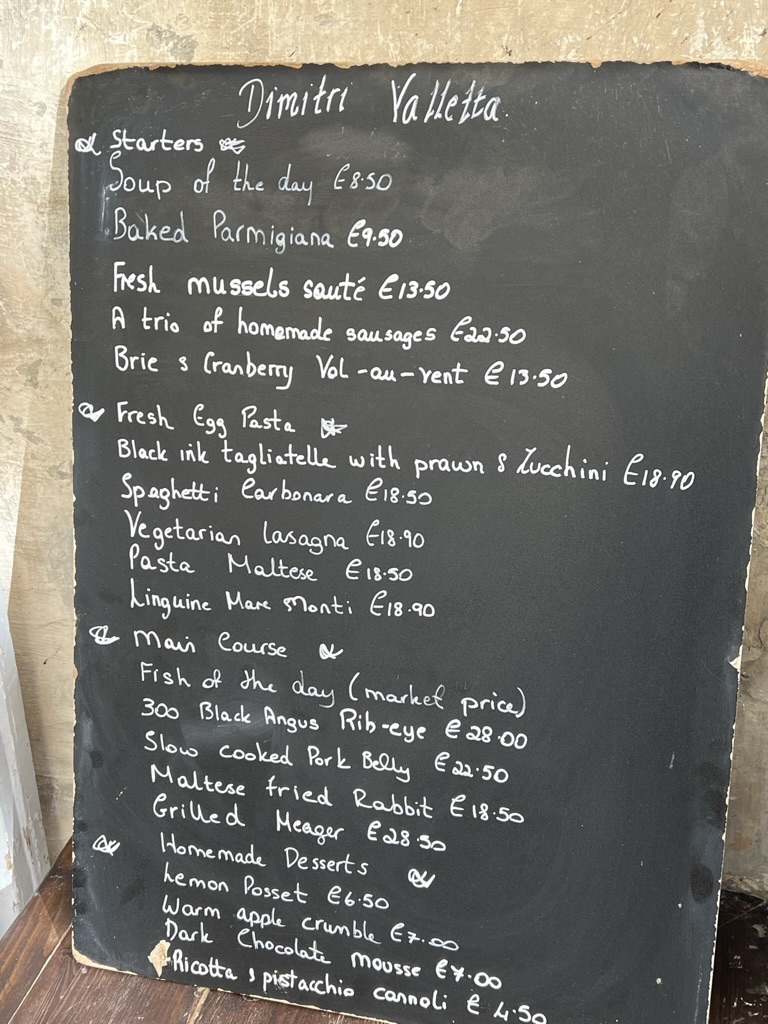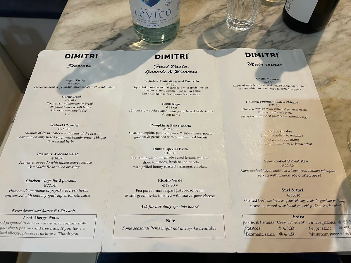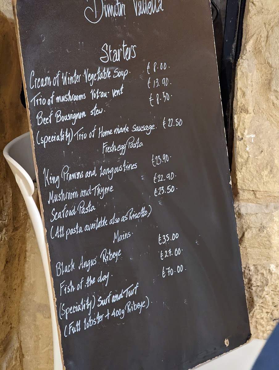 Dimitri Valletta offers a diverse and enticing menu, perfect for those seeking a blend of traditional and contemporary Mediterranean flavors. Start your meal with a choice of Vegan Tartlet, Garlic Bread, or a hearty Seafood Chowder. The Prawn & Avocado Salad and Chicken Wings for 2 persons provide a great option for sharing, while the selection of Fresh Pasta, Gnocchi, and Risottos truly stands out. Try the Tagliatelle Frutti di Mare al Cartoccio for a seafood-infused delight or opt for the rich Lamb Ragu. The Pumpkin & Brie Gnocchi and Dimitri Special Pasta offer unique flavors, while the Risotto Verde presents a delicious, herb-packed choice. For the main courses, the Vitello Milanese and Chicken Roulade (Stuffed Chicken) provide hearty and flavorful dishes. The Fish of the Day is priced according to weight, ensuring freshness, while the Slow-Cooked Rabbit Stew and Surf & Turf offer hearty, indulgent options. For dessert, enjoy a sweet finish with Imqaret, a delightful Apple & Cinnamon Tart for two, or the creamy Pumpkin & White Chocolate Cheesecake (Twistees). The Pear Crumble and Cassatella Siciliana offer traditional Sicilian flavors to end your meal on a sweet note.